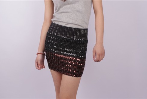 > Shining Sequins Embellished Pure Color Skirt Black..