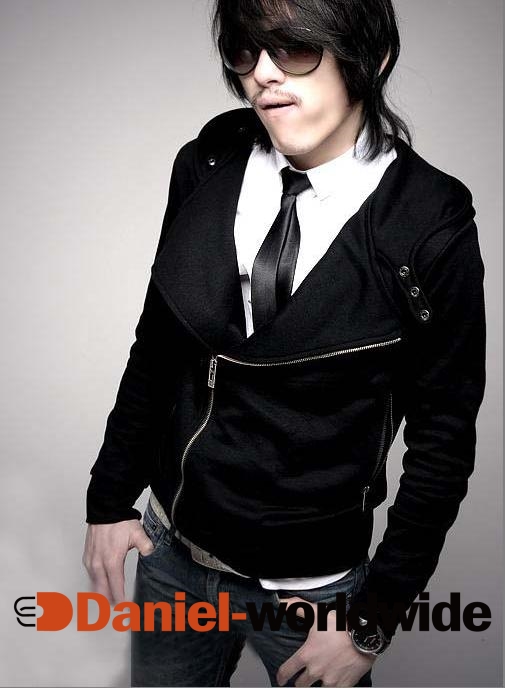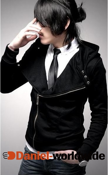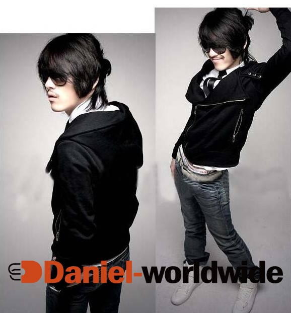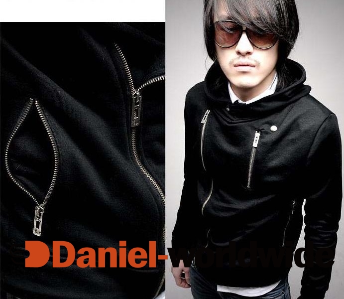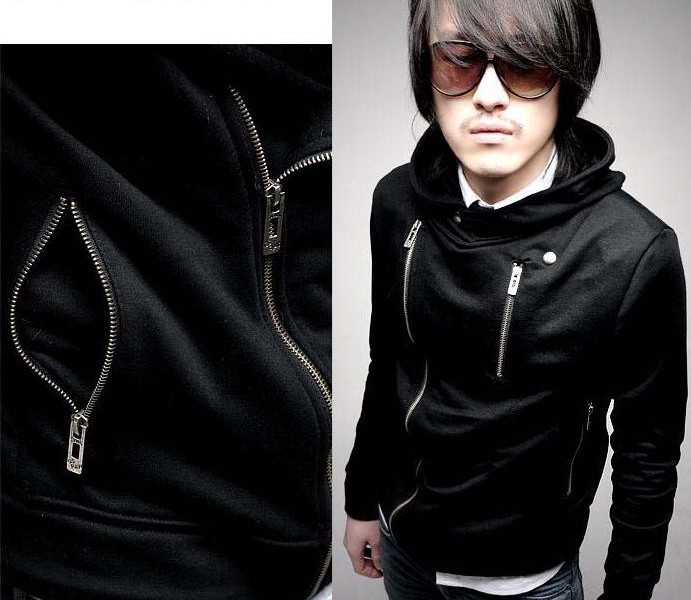 > Stylish Side Zipper Hooded Leisurely Coat Black
