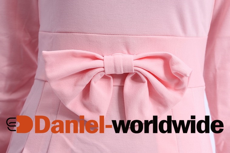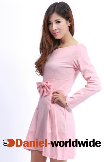 > Sweet Bowknot Solid Color Slim Dress Pink
