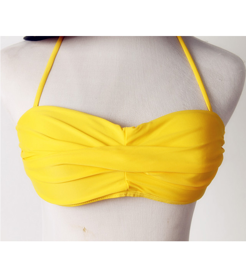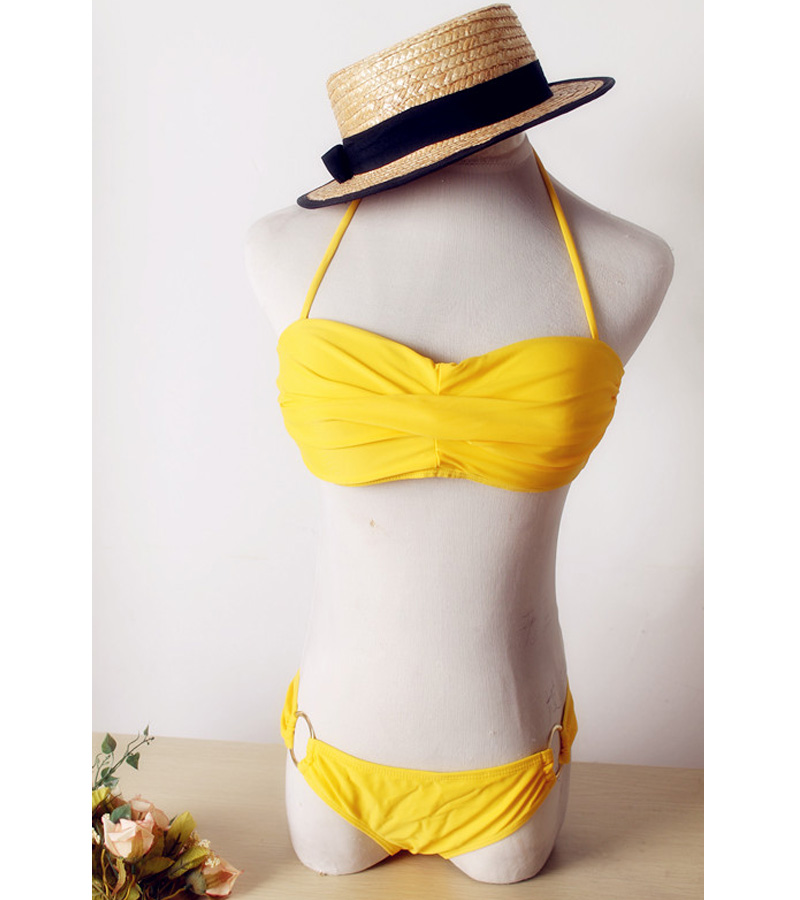 Fabulous Two-piece Classic Pleated Design Circle Embellished Bikini Yellow