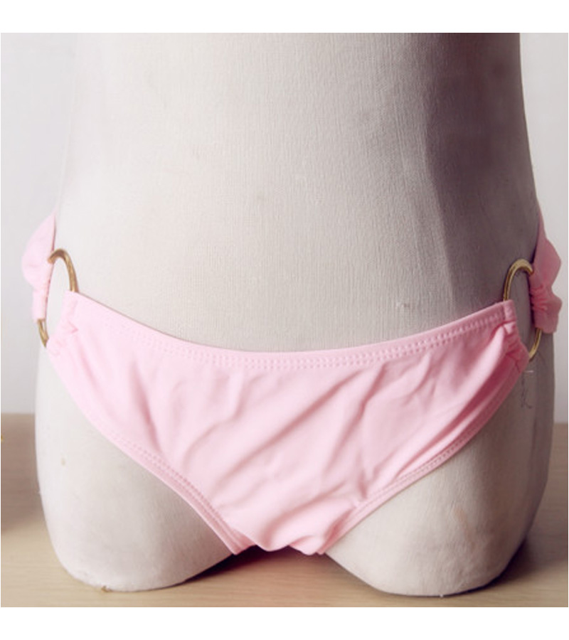 Fabulous Two-piece Classic Pleated Design Circle Embellished Bikini Pink