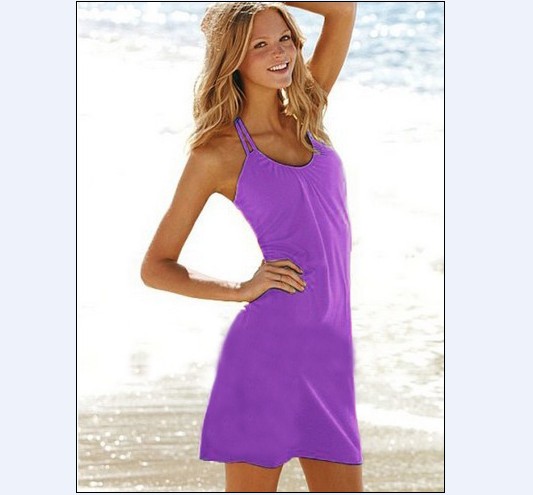 Vogue Summer Double Strap Pure Bikini Dress Purple