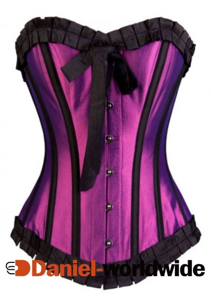 Magenta taffeta overbust corset is our new designs, a full steel boned corset finished in taffeta with black detailing on each bone. The taffeta is hard wearing, easy to maintain & unlike satin doesn't suffer from crease lines when the corset is pulled tight. This beautiful corset top is completed with a black taffeta trim.