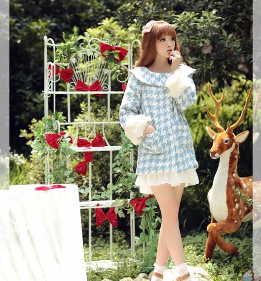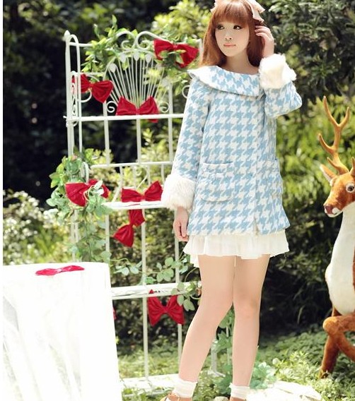 > Sweet Lovely Plover Princess Neck Coat Blue&White