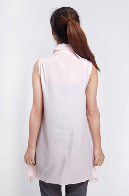 Vogue Pleated Irregular Sleeveless Chiffon Blouse Pink