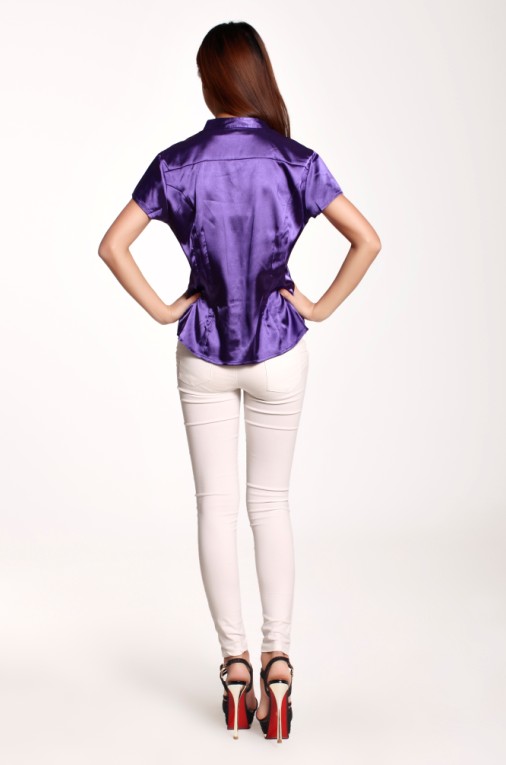 New Arrival Korea Pure Color V Neck Short Sleeve Blouse Purple
