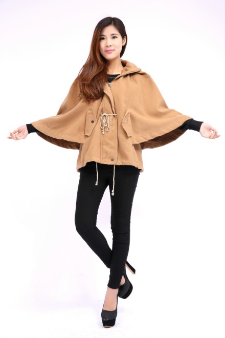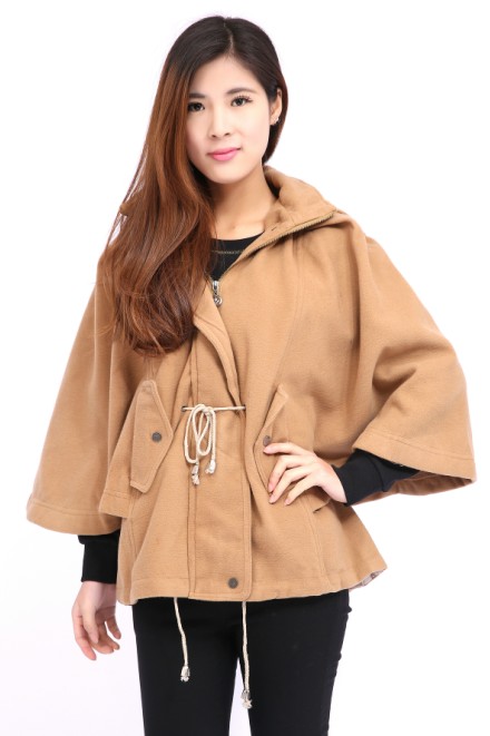 2014 Fashion Hood Cloak Coat Beige