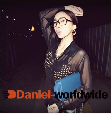 > Stylish Transparent Rivet Cross Design Blouse Blac..