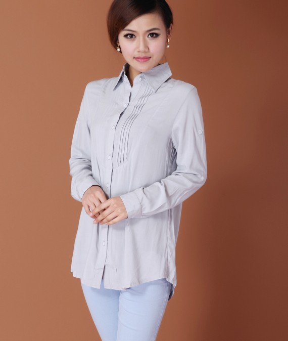 Plus Size Pure Color Turn-down Collar Cotton Shirt Grey