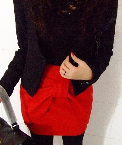 > Korean Style Bowknot Slim Skirt Red