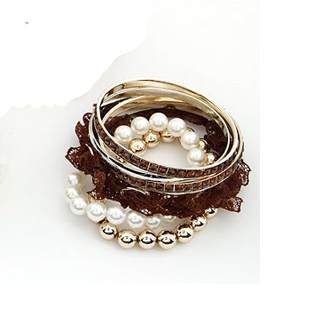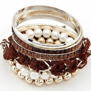 Elegant Lace Embellished Multilayer Pearl Bracelet Coffee