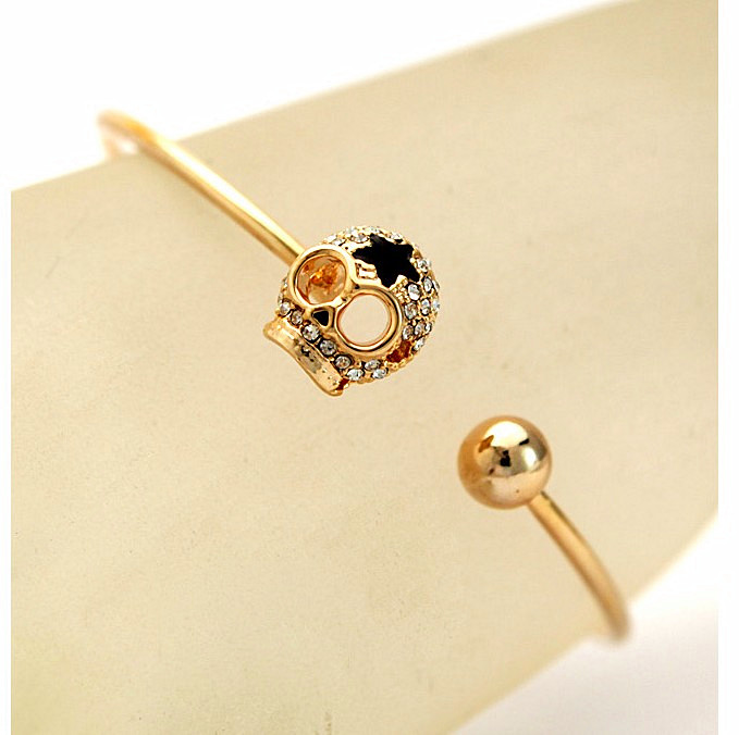 Stylish Rhinestone Skull Star Bangle Gold