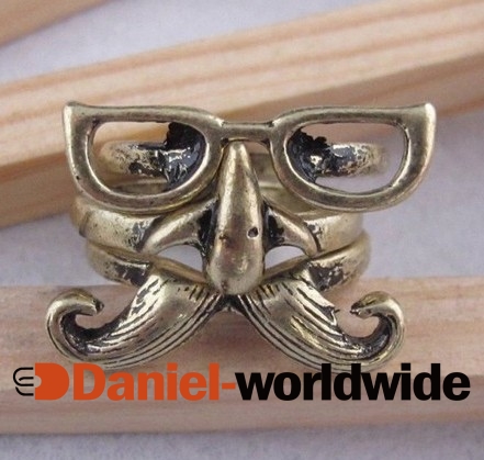> Fashion Old Man Face Glasses Embellished Ring Bron..