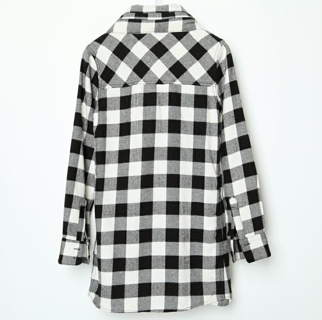Classic Style Plaid Long Sleeves Long Blouse Black&White