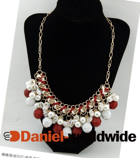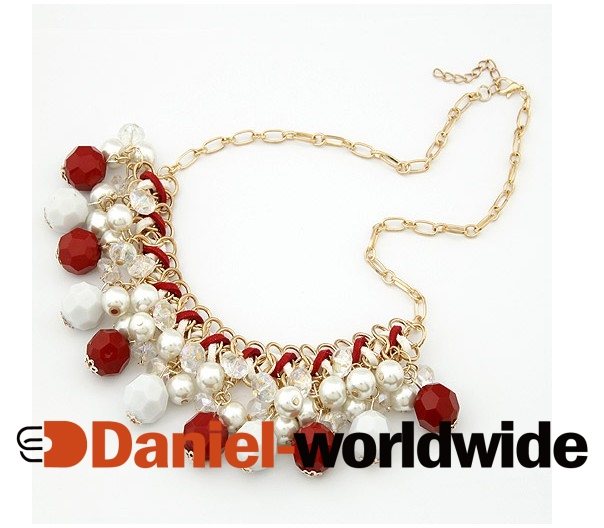 Hot Sale Bohemia Pearl Chain Rhinestone Necklace Red
