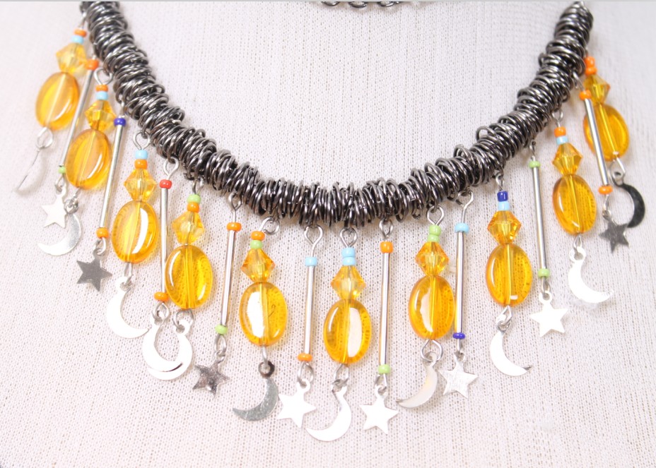 Vogue Tassel Chain Stars Bead Necklace Yellow