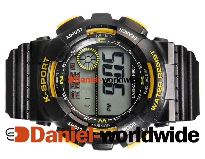 LASIKA W-H9001 Unisex 30M Water Resistant 7-Color & 3-Level Waterproof Cold-Light Sport Watch with Calendar & Alarm Clock Function (Yellow)