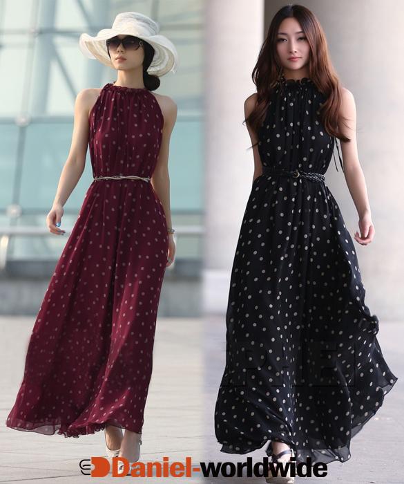 > Women's Elegant Chiffon Dot Vest Maxi Full Long Dr..