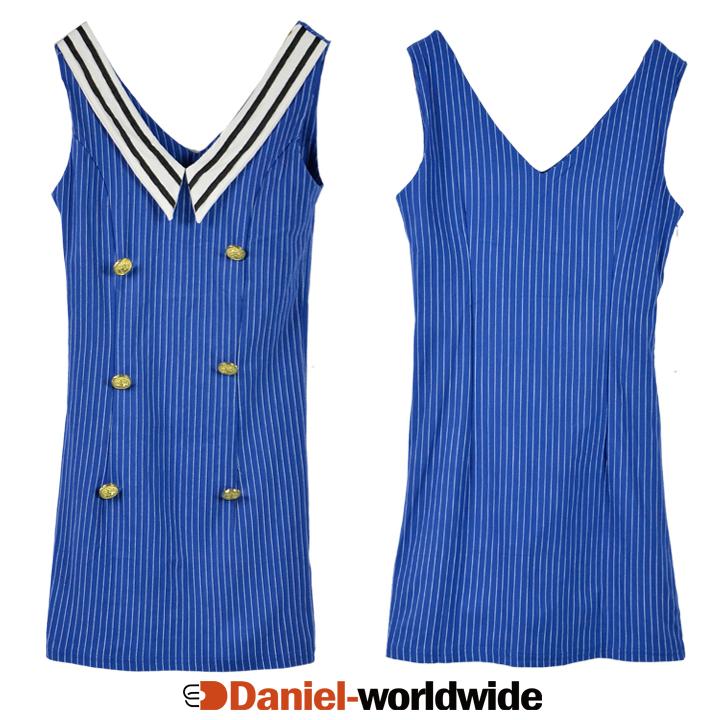 > Women V-neck Vertical Stripe Double Breasted Dress