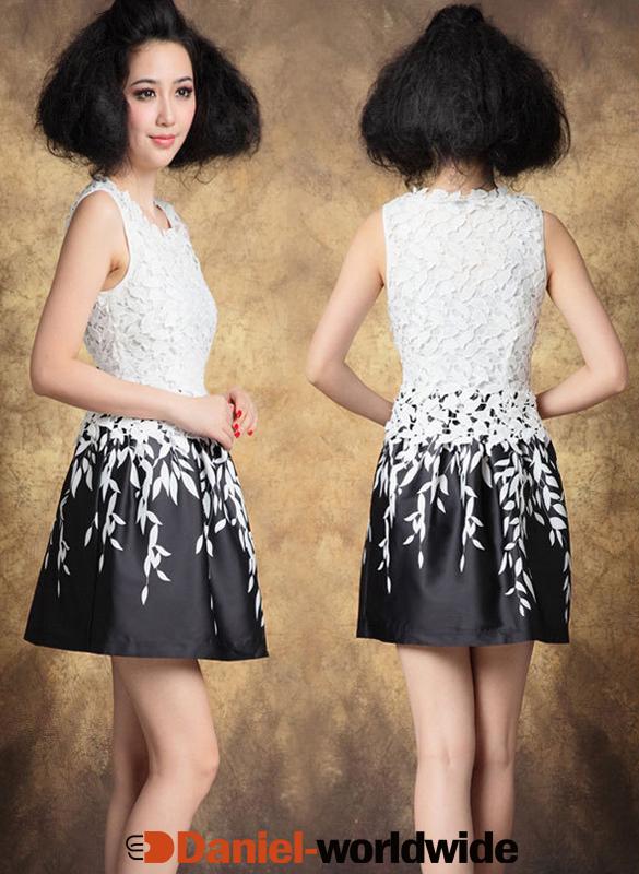 > Women Embroidery Lace Dress Summer Runway Sleevele..