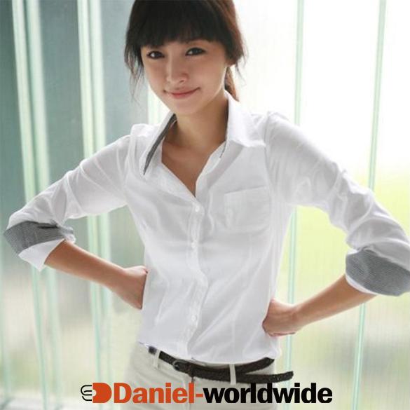 >   Product   >   Blouses   >   Women's Office White Long Sleeve Shirt Plaid Cuff ..