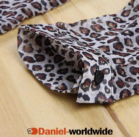 Women Leopard Print Chiffon T Shirt Tops Button Down Blouse