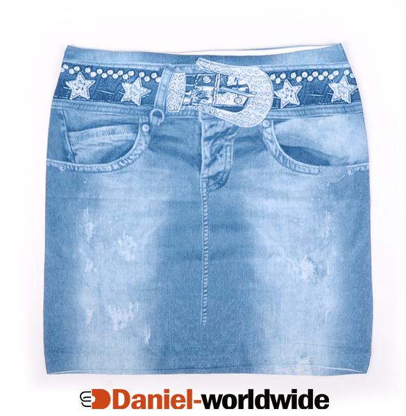 Ladies Blue Skinny Jeans Elastic Imitation Denim Mini Skirt