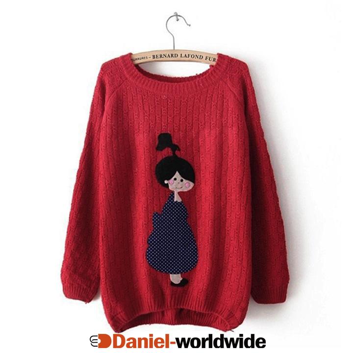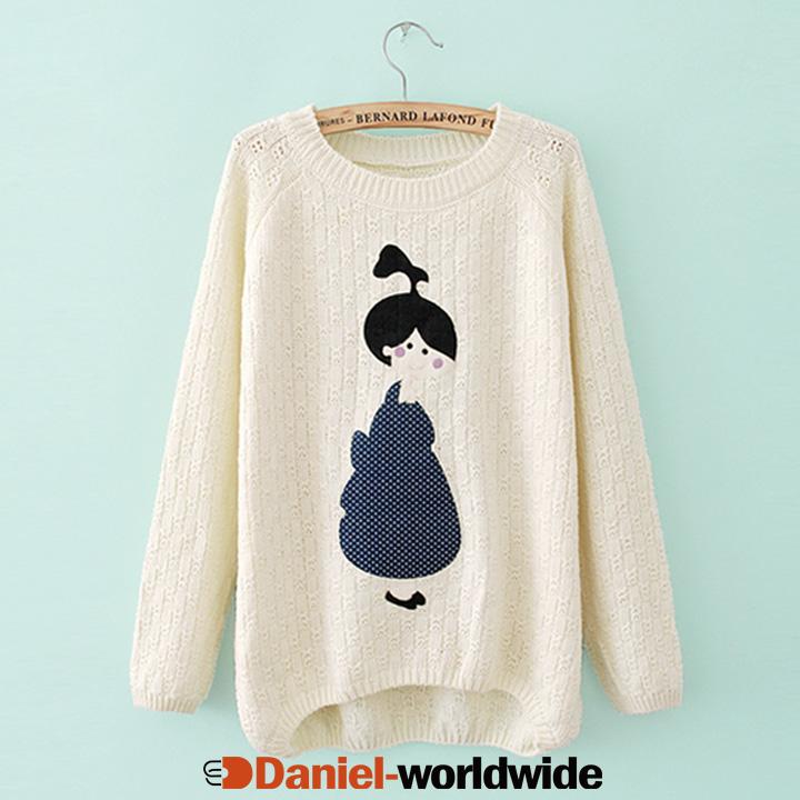 >   Product   >   Sweaters / Cardigans   >   Korea Girl Cartoon College Style Applique Loose Pu..