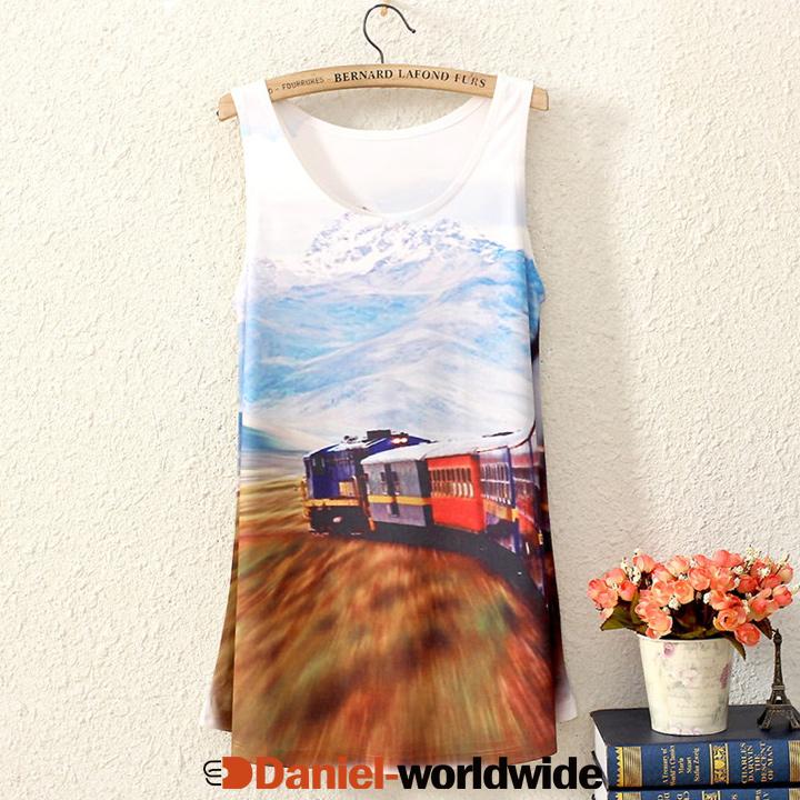 Women Sleeveless Eiffel Tower Graphic Printed T Shirt Tee Tank Tops