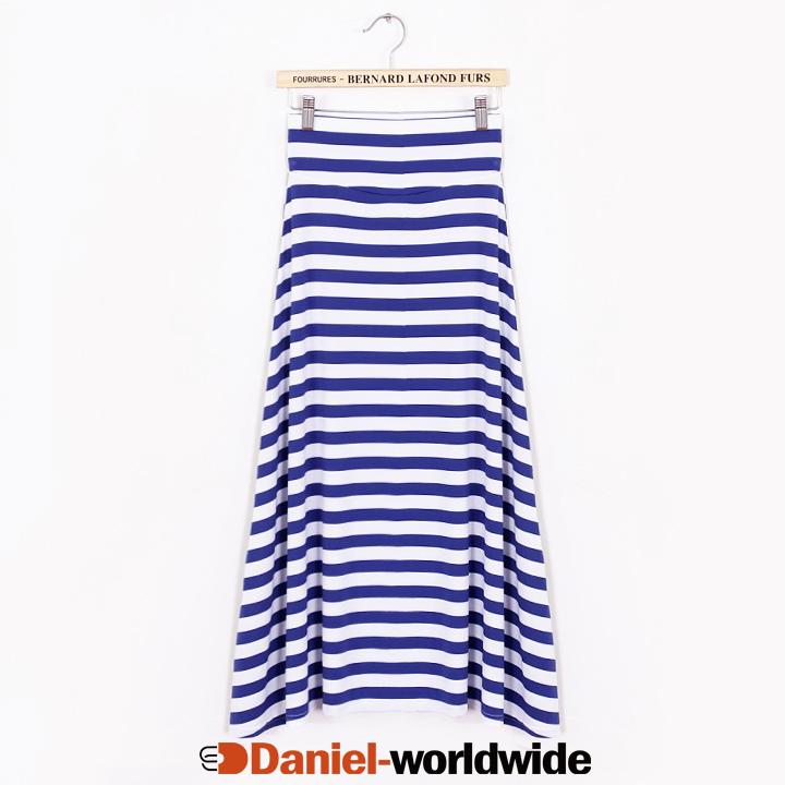 > Women's Elegant Joker Stripe Long Skirt Elastic Wa..