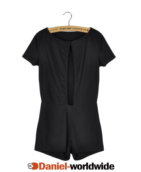 Women's Clubwear Short Sleeve Outfit Front Hollow Bodycon Bandage Jumpsuit