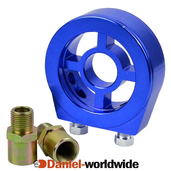Aluminum Oil/Gauge Filter Sandwich Racing Sport Plate Adapter Kit Blue