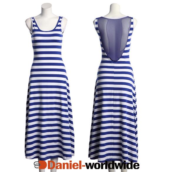 Fashion Women's Girl Sleeveless Stripe Net Yarn Splicing Slim Maxi Dress