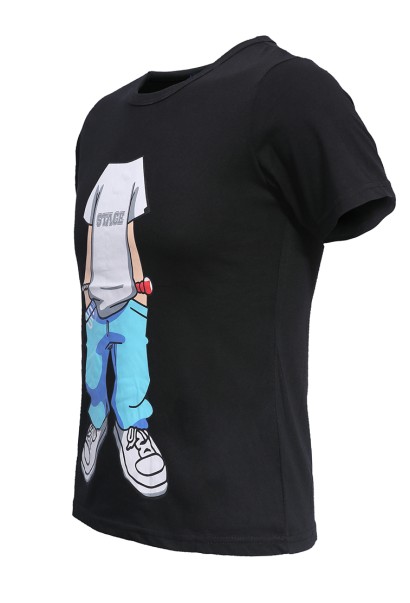 Individual Pattern Printed Short Sleeves T-shirt Black
