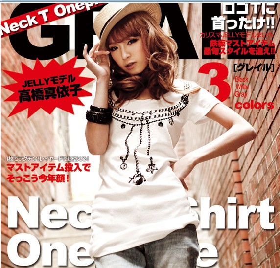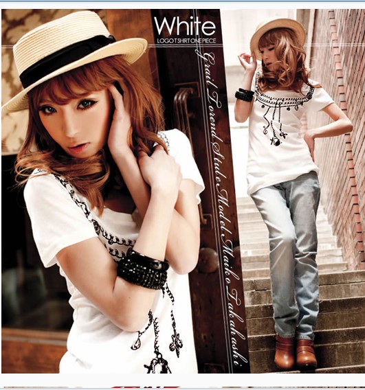 Korean Style Necklace Printed Cotton T-shirt White
