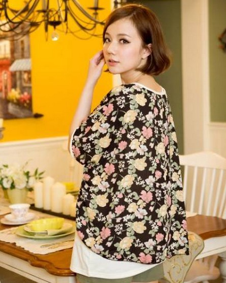 Mori Girl Style Fake Two-piece Flower Pattern Casual Tee Black