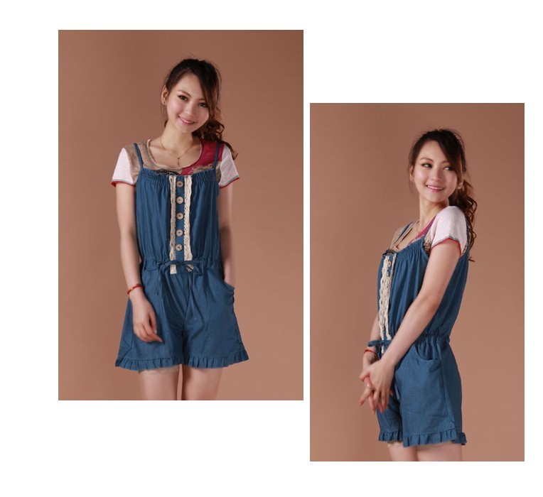 Hot Sale Half-length Single Button Moveable Straps Jumpsuit Blue