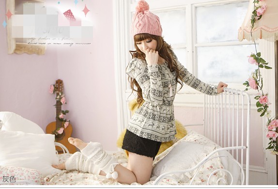 Sweet Frills Design Cute Deer Printed T-shirt Light Grey