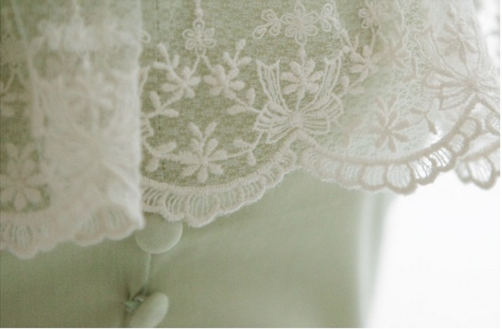 > Charming Lace Ruffle Splicing Bowknot Blouse Green