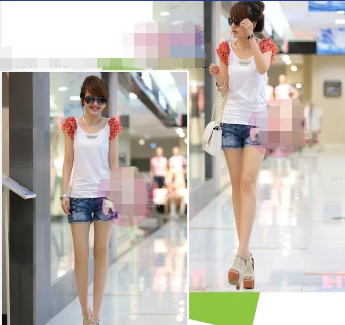 >   Product   >   Tees / T-Shirts   >   Sweet Frills Dots Color Block T-shirt Orange