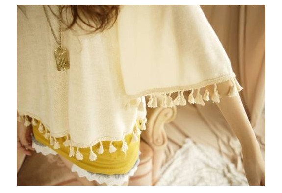 > Lovely Hooded Tassel Lap Cape Coat Beige