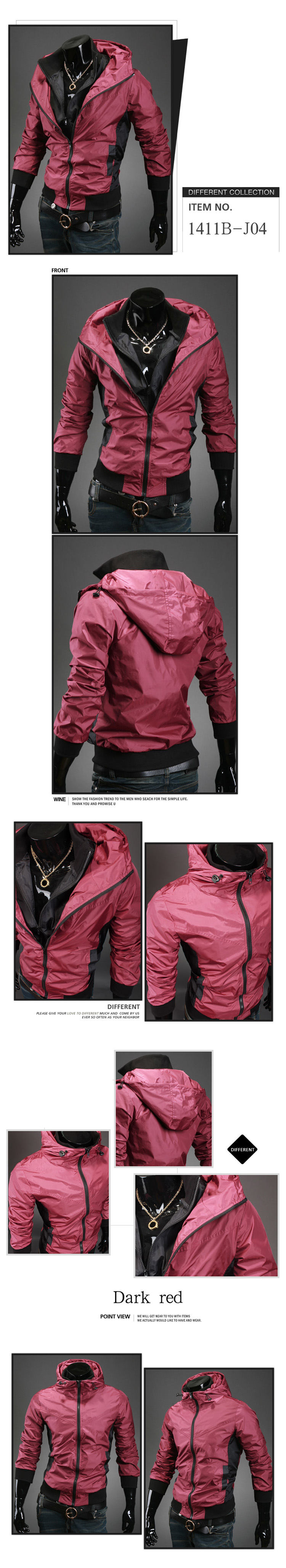 Handsome Double Collar Color Block Men’s Jacket Wine Red