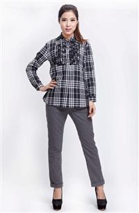 All Match Lotus Leaf Single-breasted Check Bl...