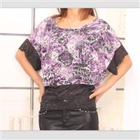 Lovely Mix-matched Lace Sleeve Splicing Chiff...