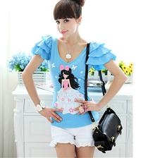 Fashion Printed Lotus Leaf Lace Short Sleeve ...