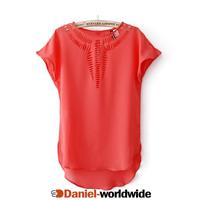 Women's Slim Front Hollow Out Chiffon Blouse ...