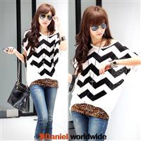 Women's Batwing Sleeve Zigzag Stripe Loose To...