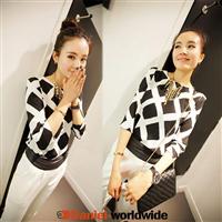 Half Sleeve Crew Neck Wave Style Chiffon Shir...