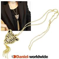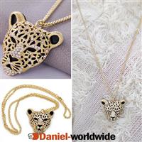 Rhinestone Leopard Tiger Head Chain Necklace ...