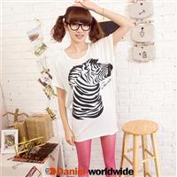 Women's Horse Printing Loose Batwing Short Sl...